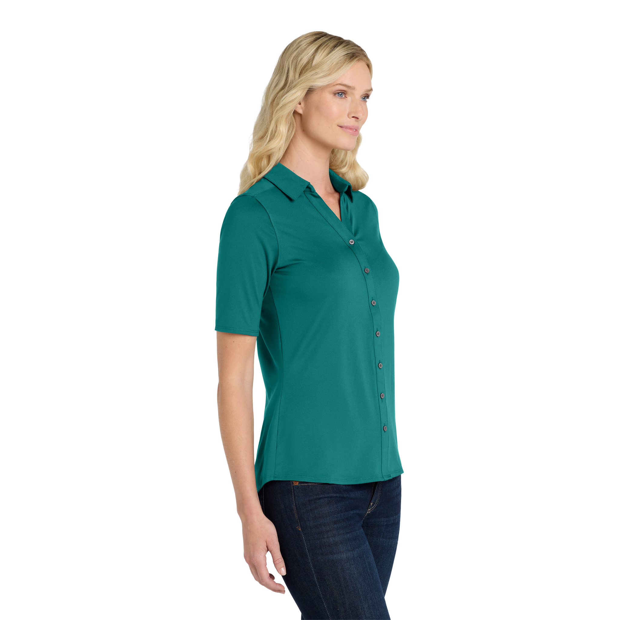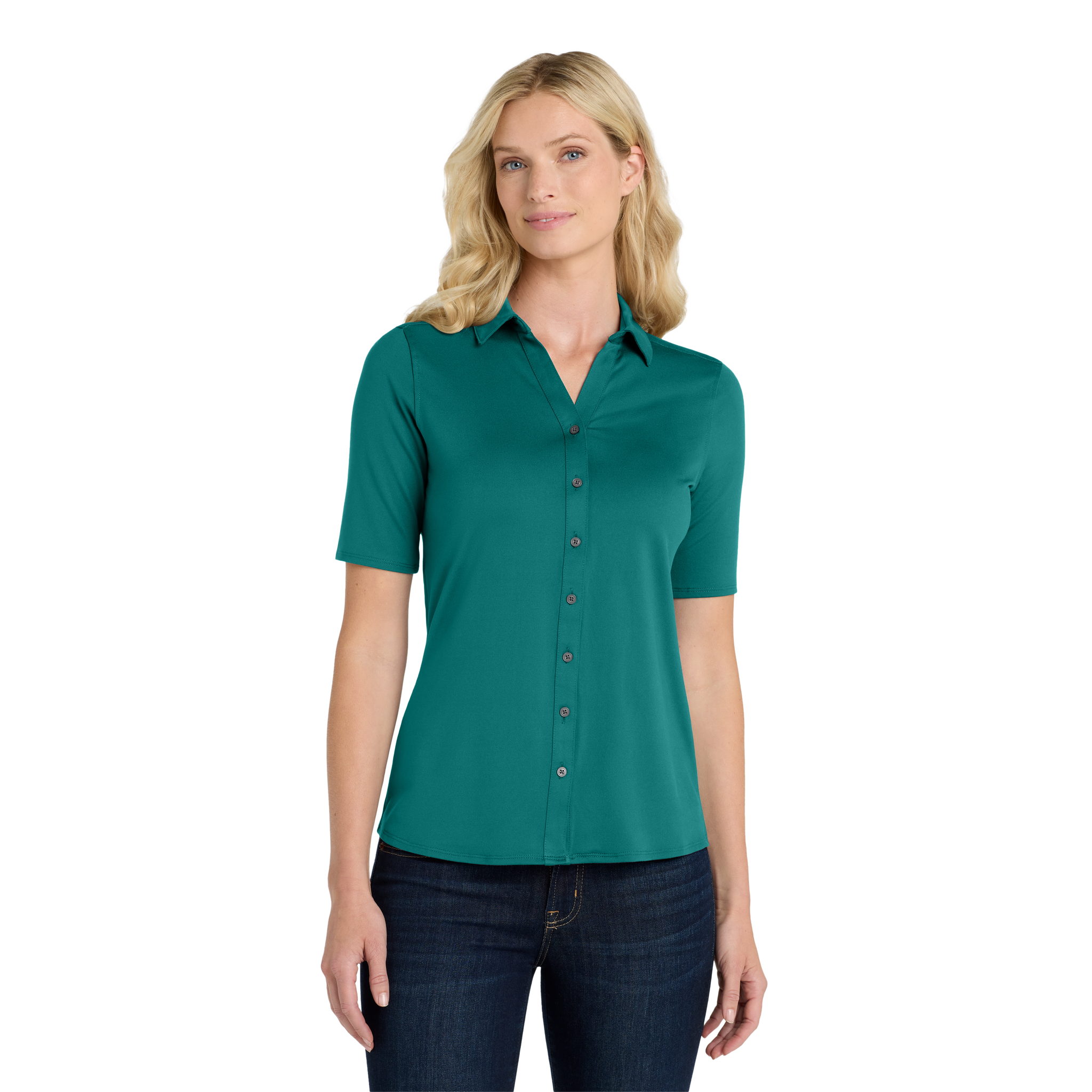 Performance joins professionalism in this Easy Care style that is snag-resistant and wicks moisture while also resisting odors.
