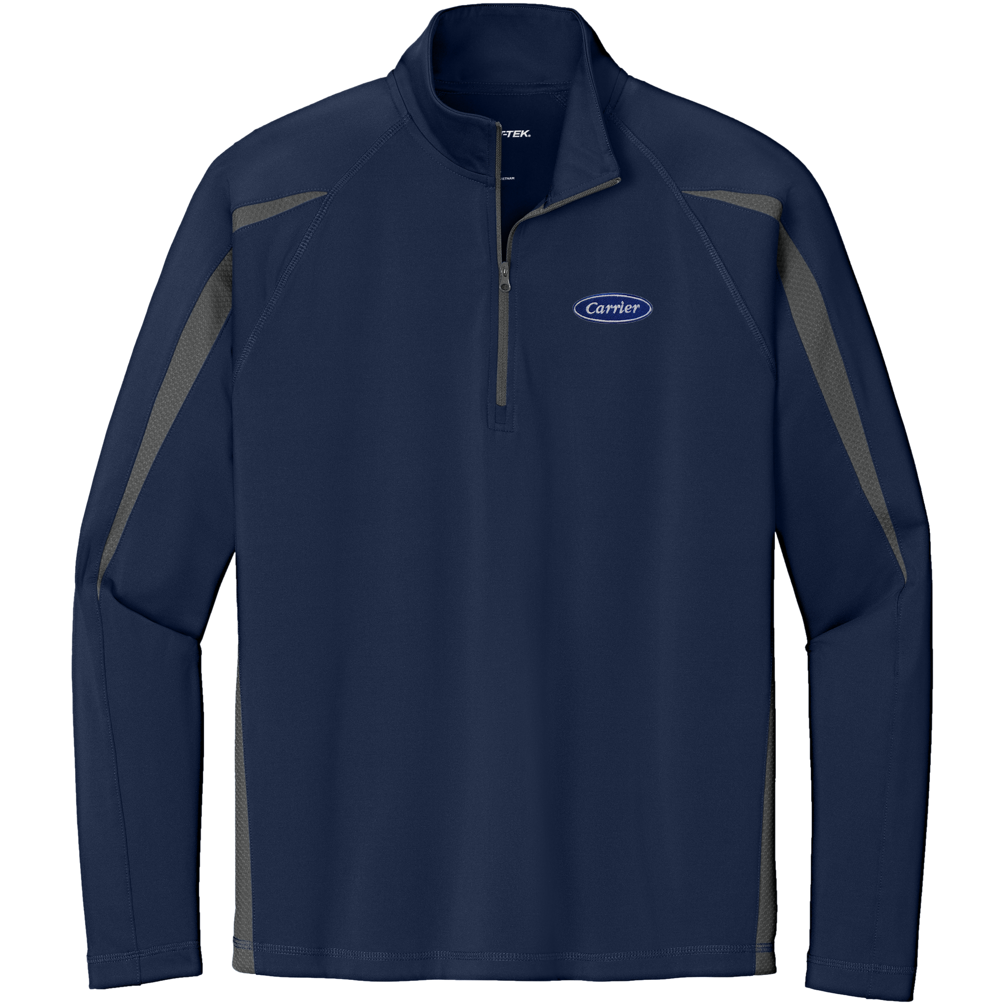 - Dyed-to-match Sport-Tek logo neck taping